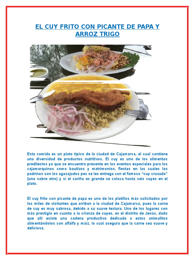 Conoce La Deliciosa Gastronomia De Cajamarca Esta innovación es elaborada por los 43 socios de la red de productores de cuy de condebamba alto (redprocuyco) luego de que fueron capacitados por especialistas de la universidad nacional de cajamarca.