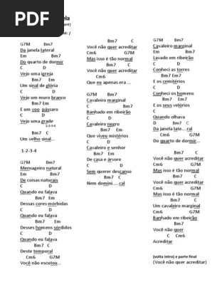 Paisagem Da Janela Beto Guedes Vagalume E b/d# c#m g#m da janela lateral do quarto de dormir a b g#m c#m vejo uma igreja, um sinal de gl贸ria a b g#m c#m vejo um muro branco e um v么o p谩ssaro a b g#m a am vejo uma grade e um velho sinal.