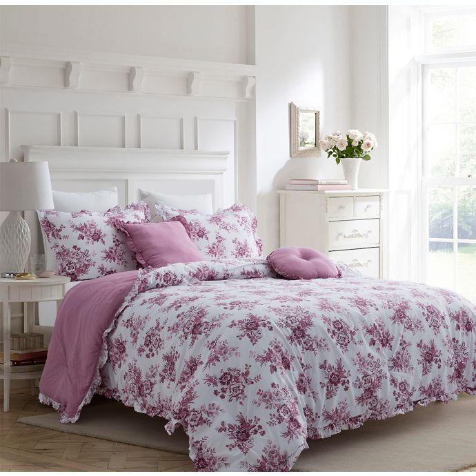 Uncategorized Pink Damask Comforter Set ultra soft shaggy pink faux fur comforter set The chenille damask and smoke blue gold frame pattern is made of rayon and polyester